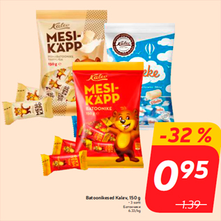 Kampaania periood: 22.01.2019 - 28.01.2019 Hind: 0.95€ Batoonikesed Kalev, 150 g• 3 sorti