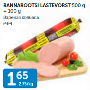 Kampaania periood: 26.02.2019 - 04.03.2019 Hind: 1.65€ RANNAROOTSI LASTEVORST 500 G + 100 G