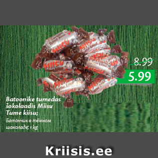 Kaup batoonike tumedas šokolaadis miisu tume kiisu oli müügil allahindlusega Maxima Hüpermarketi poes ajavahemikul 28.03.2019 kuni 10.04.2019 hinnaga 5.99 eurot.