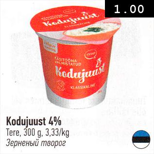 Kampaania periood: 02.04.2019 - 15.04.2019 Hind: 1.00€ Kodujuust 4%Tere, 300 g