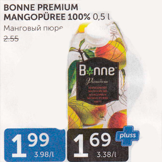 Kampaania periood: 09.04.2019 - 15.04.2019 Hind: 1.69€ BONNE PREMIUM MANGOPÜREE100%, 0,5 L