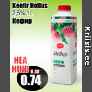 Kampaania periood: 20.05.2019 - 02.06.2019 Hind: 0.74€ Keefir Hellus2,5%, 1 l
