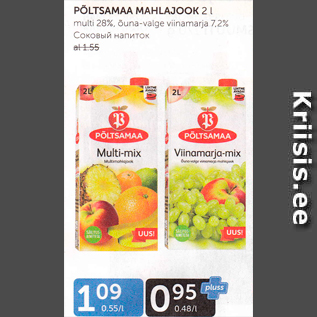 Kampaania periood: 01.07.2019 - 31.07.2019 Hind: 0.95€ PÕLTSAMAA MAHLAJOOK 2 Lmulti 28%, õuna-valge viinamari 7,2%