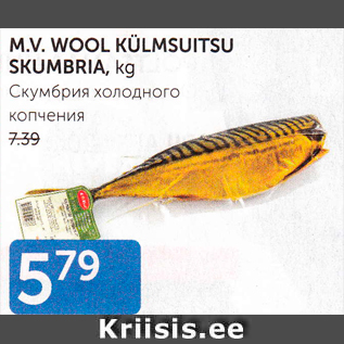 Kaup m.v.wool külmsuitsu skumbria, kg oli müügil allahindlusega Maksimarketi ja Konsumi poodides ajavahemikul 23.07.2019 kuni 29.07.2019 hinnaga 5.79 eurot.