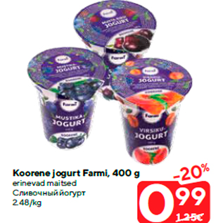 Kampaania periood: 03.09.2019 - 09.09.2019 Hind: 0.99€ Koorene jogurt Farmi, 400 gerinevad maitsed