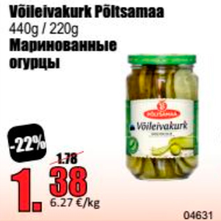 Kampaania periood: 27.09.2019 - 29.09.2019 Hind: 1.38€ Võileivakurk Põltsamaa440 g / 220 g