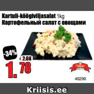 Kampaania periood: 27.09.2019 - 29.09.2019 Hind: 1.78€ Kartuli-köögiviljasalat 1 kg