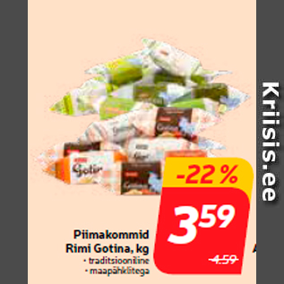Kampaania periood: 24.09.2019 - 30.09.2019 Hind: 3.59€ Piimakommid Rimi Gotina, kg• traditsiooniline • maapähklitega