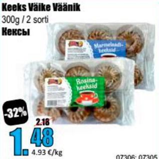 Kampaania periood: 14.10.2019 - 20.10.2019 Hind: 1.48€ Keeks Väike Väänik300 g / 2 sorti