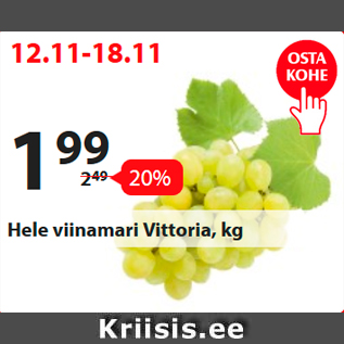 Kampaania periood: 12.11.2019 - 18.11.2019 Hind: 1.99€ Hele viinamari Vittoria, kg