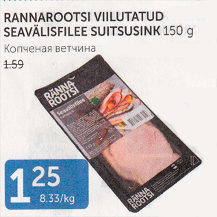 Kaup rannarootsi viilutatud seavälisfilee suitsusink 150 g oli müügil allahindlusega Maksimarketi ja Konsumi poodides ajavahemikul 26.11.2019 kuni 02.12.2019 hinnaga 1.25 eurot.