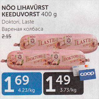 Kampaania periood: 26.11.2019 - 02.12.2019 Hind: 1.49€ NÕO LIHAVÜRST KEEDUVORST 400 GDoktori, Laste