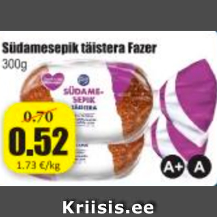 Kampaania periood: 13.12.2019 - 19.12.2019 Hind: 0.52€ Südamesepik täistera Fazer 300 g