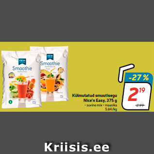 Kampaania periood: 02.01.2020 - 06.01.2020 Hind: 2.19€ Külmutatud smuutisegu Nice'n Easy, 375 g• suvine mix • maasika