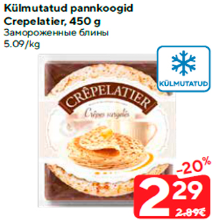 Kampaania periood: 11.02.2020 - 17.02.2020 Hind: 2.29€ Külmutatud pannkoogid Crepelatier, 450 g