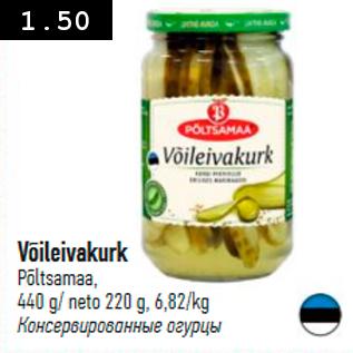 Kampaania periood: 06.03.2020 - 23.03.2020 Hind: 1.50€ VõileivakurkPõltsamaa, 440 g / neto 220 g