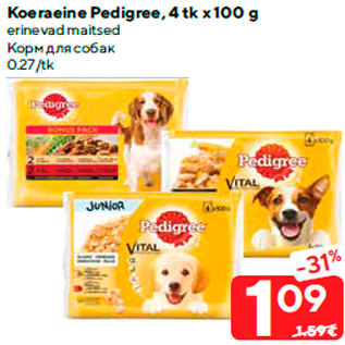 Kampaania periood: 19.05.2020 - 25.05.2020 Hind: 1.09€ Koeraeine Pedigree, 4 tk x 100 gerinevad maitsed