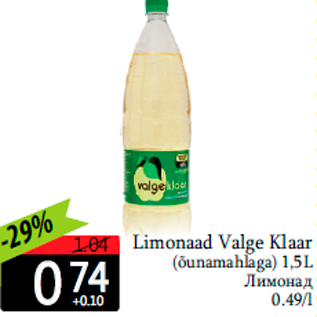 Kampaania periood: 08.06.2020 - 14.06.2020 Hind: 0.74€ Limonaad Valge Klaar(õunamahlaga) 1,5L