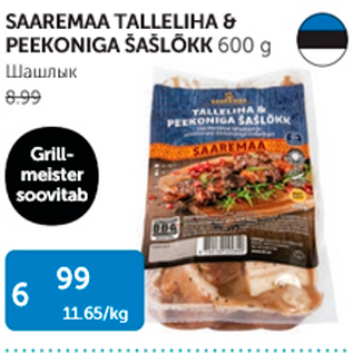 Kampaania periood: 30.06.2020 - 06.07.2020 Hind: 6.99€ SAAREMAA TALLELIHA & PEEKONIGA ŠAŠLÕKK 600 G