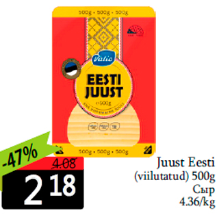 Kampaania periood: 20.07.2020 - 26.07.2020 Hind: 2.18€ Juust Eesti(viilutatud) 500g