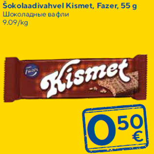 Kampaania periood: 21.07.2020 - 27.07.2020 Hind: 0.50€ Šokolaadivahvel Kismet, Fazer, 55 g