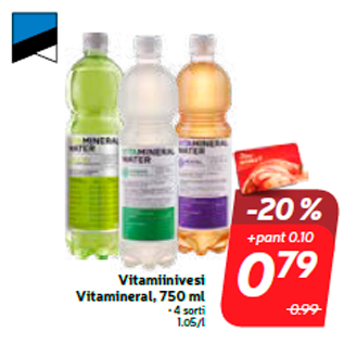 Kampaania periood: 28.07.2020 - 03.08.2020 Hind: 0.79€ Vitamiinivesi Vitamineral, 750 ml• 4 sorti
