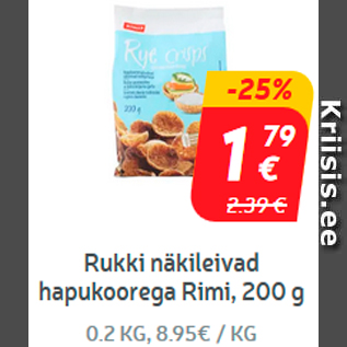 Kampaania periood: 01.09.2020 - 07.09.2020 Hind: 1.79€ Rukki näkileivad hapukoorega Rimi, 200 g
