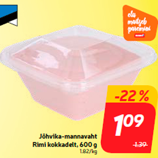 Kampaania periood: 08.09.2020 - 14.09.2020 Hind: 1.09€ Jõhvika-mannavaht Rimi kokkadelt, 600 g