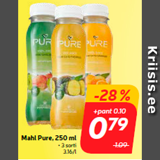 Kampaania periood: 08.09.2020 - 14.09.2020 Hind: 0.79€ Mahl Pure, 250 ml• 3 sorti