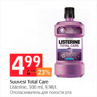 Kampaania periood: 01.09.2020 - 01.10.2020 Hind: 4.99€ Suuvesi Total CareListerine, 500 ml