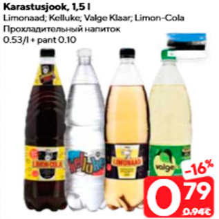 Kampaania periood: 29.09.2020 - 05.10.2020 Hind: 0.79€ Karastusjook, 1,5 lLimonaad; Kelluke; Valge Klaar; Limon-Cola