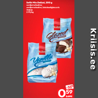 Kampaania periood: 29.09.2020 - 05.10.2020 Hind: 0.59€ Sefiir Mio Delizzi, 200 gvaniljemaitseline; vaniljemaitseline, šokolaadiglasuuris