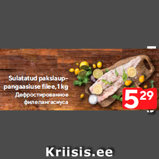 Kampaania periood: 29.10.2020 - 02.11.2020 Hind: 5.29€ Sulatatud pakslauppangaasiuse filee, 1 kg