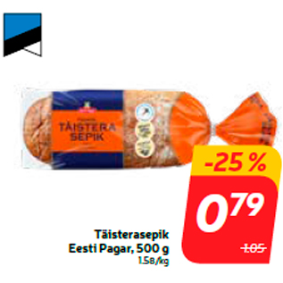 Kampaania periood: 27.10.2020 - 02.11.2020 Hind: 0.79€ Täisterasepik Eesti Pagar, 500 g