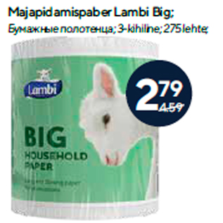 Kampaania periood: 05.11.2020 - 18.11.2020 Hind: 2.79€ Majapidamispaber Lambi Big3-kihiline; 275 lehte