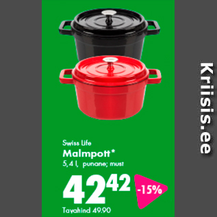 Kampaania periood: 10.11.2020 - 15.11.2020 Hind: 42.42€ Swiss Malmpott* 5,4 lpunane; must