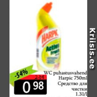 Kampaania periood: 23.11.2020 - 29.11.2020 Hind: 0.98€ WC puhastusvahend Harpic 750 ml