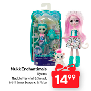 Kampaania periood: 12.11.2020 - 31.12.2020 Hind: 14.99€ Nukk EnchantimalsNaddie Narwhal & Sword; Sybill Snow Leopard & Flake