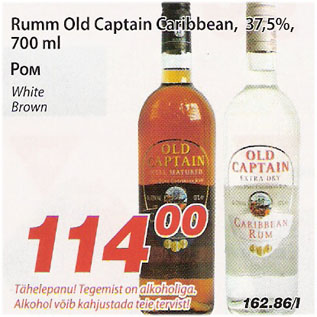 Kampaania periood: 02.02.2010 - 08.02.2010 Rumm Old Captain Caribbean, 37.5%, 700 mlWhite