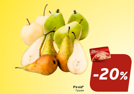 Tähelepanu! Kampaania on lõppenud! Toode pirnid* -20% oli müügil allahindlusega Hüper Rimi, Rimi, Mini Rimi poodides ajavahemikul 02.03.2018 kuni 04.03.2018 Hüper Rimi, Rimi, Mini Rimi
