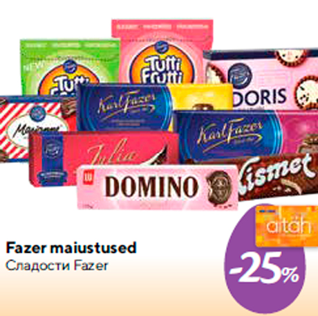 Tähelepanu! Kampaania on lõppenud! Toode fazer maiustused -25% oli müügil allahindlusega Maxima poes ajavahemikul 25.04.2019 kuni 29.04.2019 Maxima X