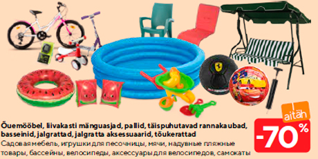 Õuemööbel, liivakasti mänguasjad, pallid, täispuhutavad rannakaubad, |