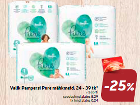 Tähelepanu! Kampaania on lõppenud! Toode valik pampersi pure mähkmeid, 24 - 39 tk* -25% oli müügil allahindlusega Hüper Rimi poes ajavahemikul 20.08.2019 kuni 26.08.2019 Hüper Rimi