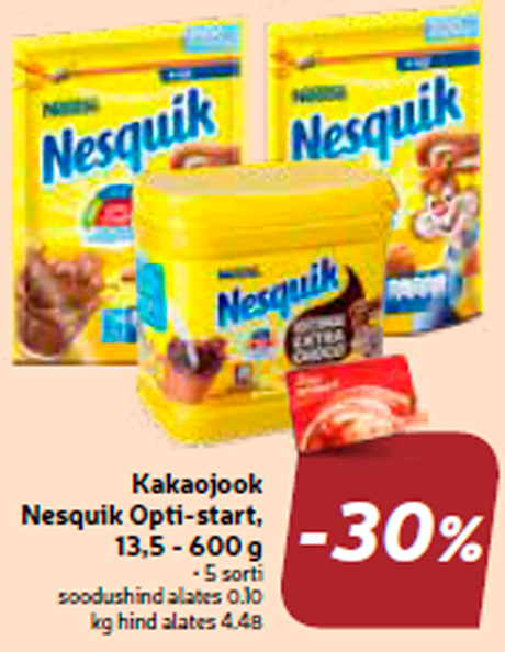 Tähelepanu! Kampaania on lõppenud! Toode kakaojook nesquik opti-start, 13,5 - 600 g -30% oli müügil allahindlusega Hüper Rimi, Rimi, Mini Rimi poodides ajavahemikul 20.08.2019 kuni 26.08.2019 Hüper Rimi, Rimi, Mini Rimi