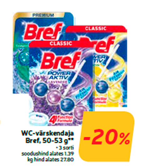 Tähelepanu! Kampaania on lõppenud! Toode wc-värskendaja bref, 50-53 g** -20% oli müügil allahindlusega Hüper Rimi, Rimi, Mini Rimi poodides ajavahemikul 09.06.2020 kuni 15.06.2020 Hüper Rimi, Rimi, Mini Rimi