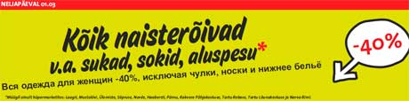 Kõik naisterõivad v.a. sukad, sokid, aluspesuKõik naisterõivad v.a. sukad, sokid, aluspesu -40% Kampaania periood: 01.03.2012 Kriisis.ee ei vastuta kommentaaride sisu eest. Autori arvamus võib kriisis.ee arvamusest erineda. Võimaluse korral jälgides kommentaare, kriisis.ee jätab endale õiguse kustutada neid põhjusi seletamata. Kui Teie olete sobimatu kommentaari märganud, palume meile sellest teatada. |