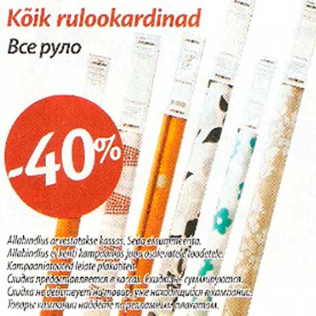 Tähelepanu! Kampaania on lõppenud! Toode rulookardinad -40% oli müügil allahindlusega Maxima poes ajavahemikul 10.07.2012 kuni 16.07.2012 Maxima X