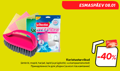 Внимание! Данная кампания закончилась! Товар принадлежности для уборки -40% продавался со скидкой в магазине Hüper Rimi, Rimi в период с 08.01.2018 по 08.01.2018 Hüper Rimi, Rimi