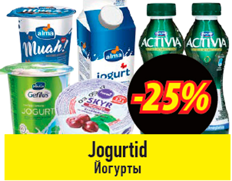 Внимание! Данная кампания закончилась! Товар йогурты -25% продавался со скидкой в магазине Selver в период с 16.01.2018 по 16.01.2018 Selver