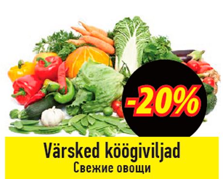 Внимание! Данная кампания закончилась! Товар свежие овощи -20% продавался со скидкой в магазине Selver в период с 14.01.2018 по 14.01.2018 Selver